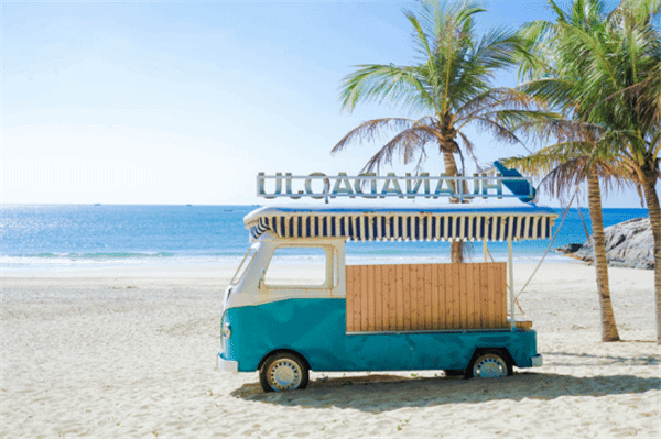破旧但被粉饰的很靓丽的道具车、泡泡帐篷、废弃渔船、椰林秋千、沙滩吊椅、白色小教堂。。。。这里集齐所有网红元素再配上Tiffany海水,不知唤起了多少少女的梦