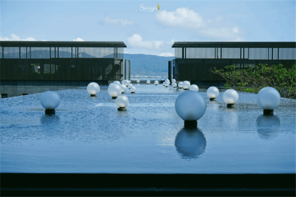 没有多久,我们便到达了太阳柏悦,酒店门前的水幕长廊很有意思,上面错落分布了大小不一的圆形白灯,听面面说,太阳柏悦的宣传照里,有一张便是一个美丽的姑娘在这长廊尽头练习瑜伽,想想那样的画面,都觉得很美的呢。