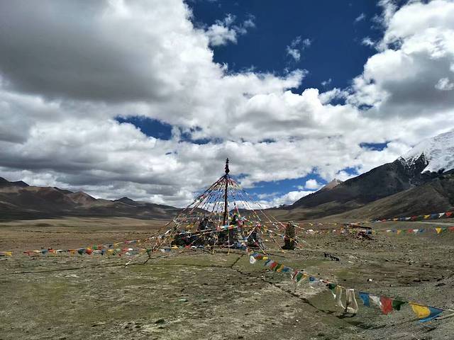 我们途径乃金岗桑,她周围耸立着10余座6000米以上的山峰,是西藏四大雪山之一。乃金岗桑山体雄伟,危岩嵯峨。顶部尖锥突兀,形如鹰嘴,坡岭沟壑间的终年积雪发育了条条冰川,附近有冰川约116多条,冰川面积达118.82平方公里。卡若拉冰川是其中面积最大的一条冰川,面积达9.4平方公里。
