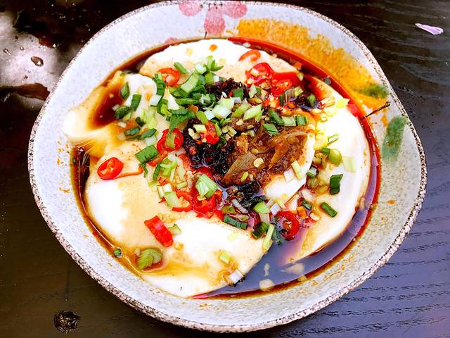 当然啦,还有古镇的石磨豆花,是这里的特产,不同于机器制作的豆花,石磨豆花保留了豆子最原始的清香,吃起来虽然没有那么细,但是超级好吃。