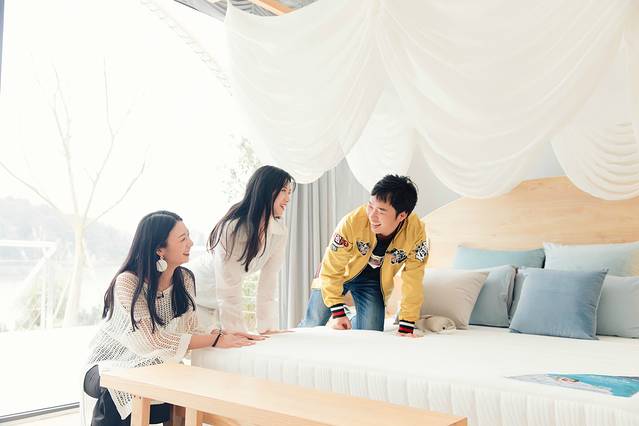 总说不能辜负春天,应该出去踏春,要去赏花,得去湖边看摇摇晃晃的鱼和天鹅,一年四季的奔波,难得有休息的时候,收到全友绿活节的邀请,来到成都录节目,因为要感受绿色家居生活,所以我们就住进了春天的旷野里。这次是作为酒店试睡师与大家分享旅行与睡眠的故事。