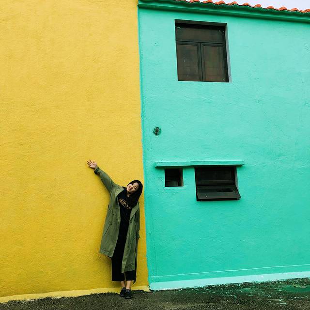 这个彩色的墙很好看,照了好多张才有两个满意的。
