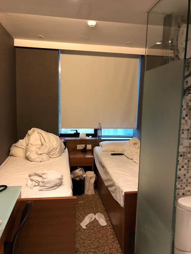 香港--简悦酒店铜锣湾店(我订的时候是400多一点一晚,在香港这种寸土寸金的地方,真的是很便宜了,房间真的很小,我们三个人订了两个房间,一个房间真心住不下,行李箱放着都费劲)