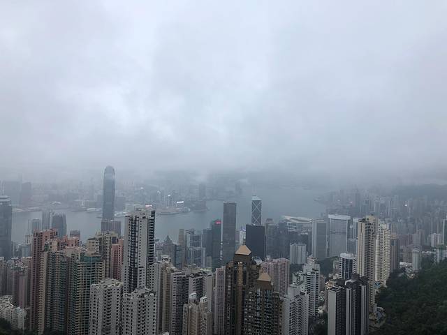 逛完杜莎夫人蜡像馆就来到了今天的重头戏,看山顶的风景。莅临香港最高360度观景台凌霄阁摩天台428,尽是目不暇给的视觉体验,让您站于海拔428米的无敌观景台之上,在全港最优越的地理位置,饱览醉人都会景致,大有君临天下之感。前一段话是百度里的,哈哈哈哈,可是天宫不作美,我们刚到山顶的时候能看到景色,可是不到五分钟就出现大雾,什么都看不到了,本来想在上面多呆一会,但是下雨,山顶还很冷,就放弃了。