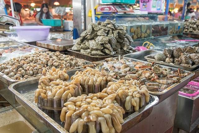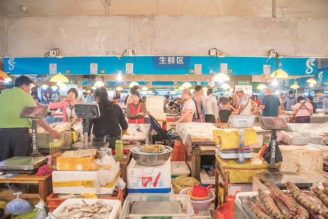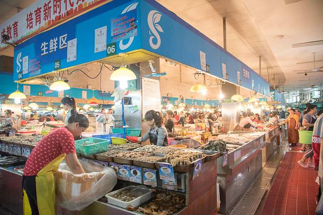 而我为了吃东西方便,酒店就订的离第一市场很近的地方。这里的海鲜新鲜又便宜,可以在集贸市场里买了海鲜之后就近找加工店加工,这样比去大饭店吃要便宜很多,也可以进店直接在店内购买或者让店员去市场购买。琳琅满目的海鲜产品简直让人挑花了眼,第一市场旁的新民街上聚集了不少的海鲜加工厂,游客可以自行在海鲜市场购买完海鲜来自这些店里加工。