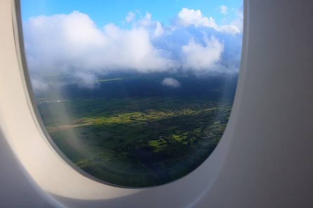 10月2日凌晨0点40分,我们一行六人踏上了前往天堂原乡的飞机。经过1天的奔波,终于在当地时间16:40分落地了 毛里求斯 西撒沃尔斯爵士国际机场。坐了这么久的飞机,本来我们都已经相当疲惫了,然而当我们看到窗外的蓝天和山峰的时候,又全都兴奋了起来,这就是天堂故乡,我们来了!