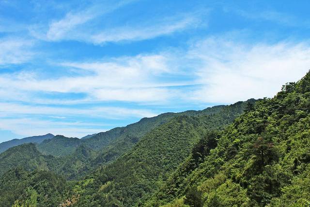 蓝天凹是徽杭古道制高点,海拔1050米。因两座山峰呈“凹”字型,蓝天白云嵌入其中,故得此名。