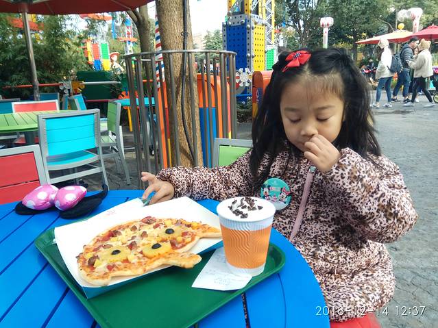 迪士尼里的午餐很招孩子喜爱,披萨套餐。我们有三张餐券,这个披萨129吧,餐券抵值后,就花三十左右,还算可以接受。