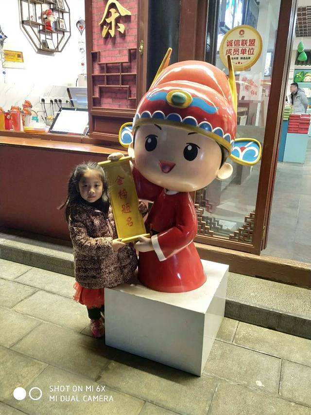 到了宾馆,放下行李,我们就步行去夫子庙,因为老公在南京也待过一段时间,所以来南京旅行的行程也都是他安排的,我们的宾馆就在夫子庙附近。我们到达夫子庙的时候,正是中午的时候,老公先带我俩去南京大牌档吃饭,几年前他在南京出差的时候就听他说过南京大牌档非常不错,所以这次来了一定带我俩来吃。正是中午吃饭的点,所以人特别多,排队,我们一家三口,老公点了阳春面、灌汤包、鸭血粉丝、狮子头,还有什么就记不住了。每一样味道都不错,我们吃的很嗨。吃完饭,在夫子庙溜达,白天的夫子庙,人不是特别多,我们在一家店铺给璇璇买了状元郎铅笔套餐,还买了两份送给哥哥。