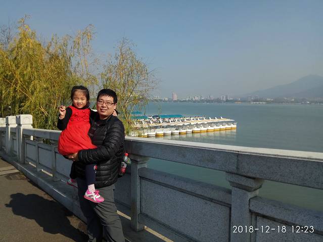 漫步在苏堤上,我们一家三口手牵着手,非常的惬意。我问璇璇:你能想起来哪些诗是描写西湖的吗?我没有想到她张口就来:欲把西湖比西子,浓妆淡抹总相宜。此刻给我的宝贝一个大大的赞!