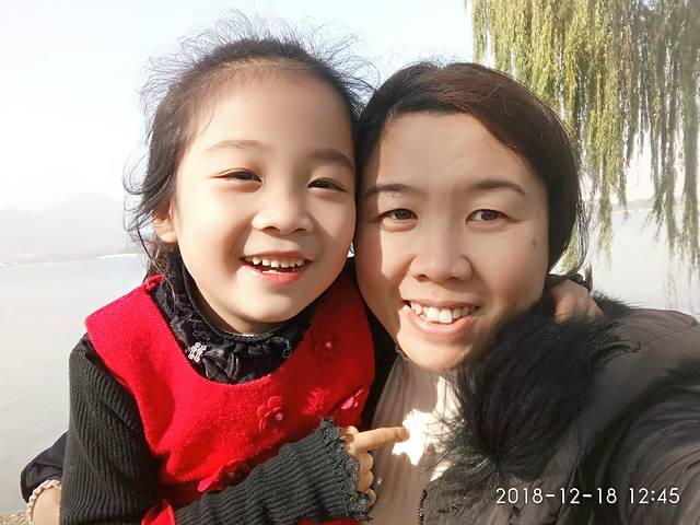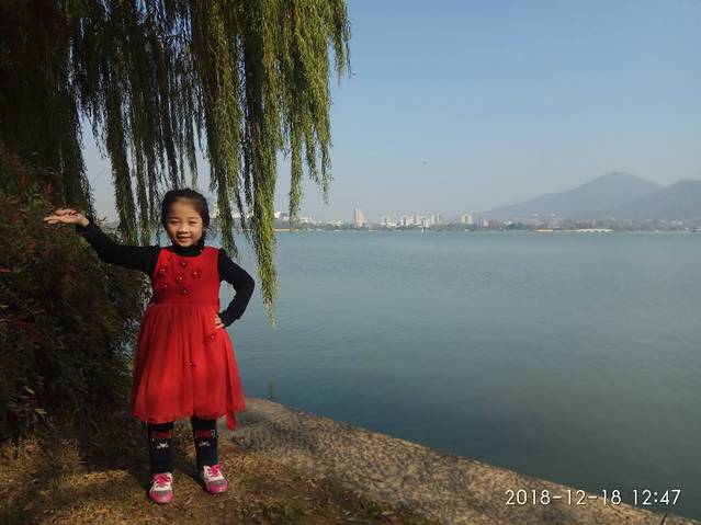 自从去了西湖游玩,我喜欢上湖了,喜欢湖水的波光粼粼,喜欢湖边垂柳的飘逸,喜欢在湖边散步的惬意。爸爸和璇璇说累了,他俩找地方坐下,我自己开始沿着湖边走去。可是我没走多远,我的小跟班也跑过来了,于是我俩开始了湖边的自拍。