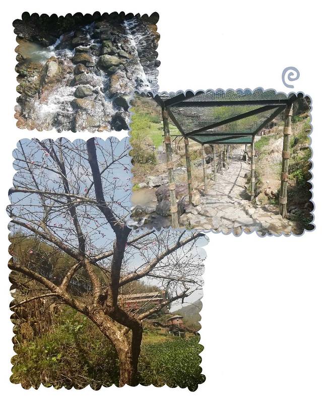 或许是正值初春时节,万物开始复苏,屋舍周围的田间地头里一片辛绿。绿油油的野草沾满了整片空地。放眼望去,屋舍前后皆是茶园。远处高山地带的茶园更是一片接着一片,逐级而下,又到了采茶忙的季节,恰逢这种出奇的好天气,茶农们更是忙的不亦乐乎。遥望远处的山,层林尽染。成片的树木黑压压的包围着整个山头。风一吹,倒是像刮起了浪花一般左右摇摆。