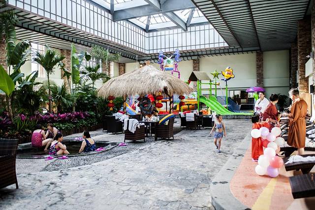 我们上午九点多到的,人还不多,我们先去的热带雨林馆,水不深,都是暖暖的温泉水,而且有儿童游乐池、欢乐水寨、水上滑梯、水上秋千等,非常适合带孩子玩,宝贝非常喜欢,回来还一直念念不忘要玩水呢。