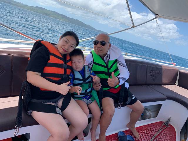 上午从酒店游会泳,下午12点来接我们去环岛游,然后BBQ。好热,一定注意防晒。参加以后,不建议环岛游,然后一人80美金,3岁以下孩子不要钱,还是选择跳岛游。