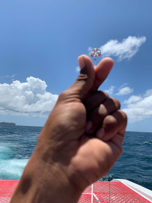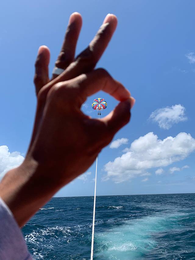 降落伞,从导游那订的,350一个人,小孩一样,因为孩子太小4岁,好多都不让玩,怕不安全,贵点无所谓,让孩子都适应下,不过小哥适应的不错👍,我在上面已经晕了。