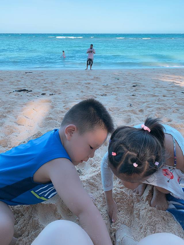 打卡3私人海滩,就是谁家大院建在海滩边上,可以从大院里BBQ,我们是导游给烤的,然后海滩游泳🏊🏻,没人,的确比白沙滩人少。看我的一儿一女多可爱,在埋我🥰🥰。