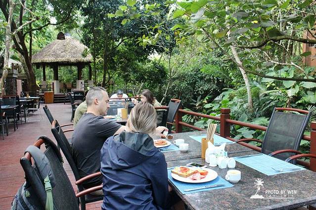 菠萝蜜树下的户外早餐,中西式早点与特色雨林美食一应俱全。如果下雨,可在西餐厅用早餐。