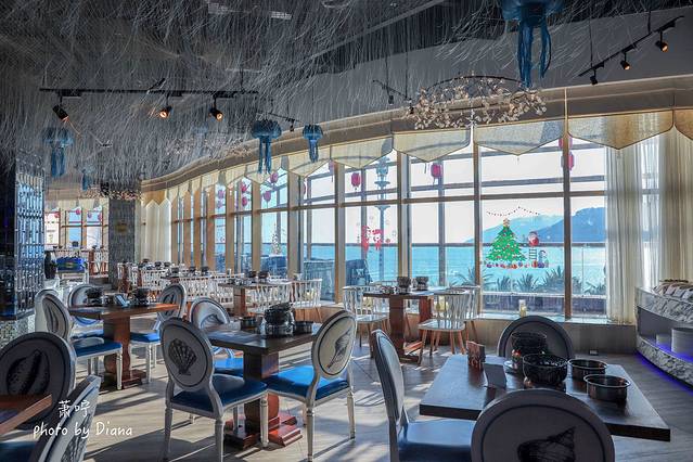 蜈支洲岛出岛最后一班船是4点的,我们3点左右就往码头方向走。回到市区大东海广场也已经6点了。大东海度假区的美食似乎都聚集在大菠萝广场里面,所以我们又返回到大菠萝广场吃个自助晚餐~