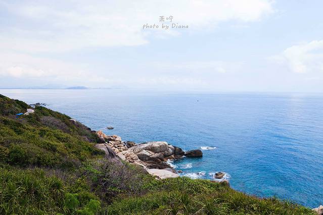 每个岛屿都会有个最高点。我们一路向上走,来到了观日岩,位于蜈支洲岛的东南悬崖处。站在岩上凭海临风,俯瞰全岛,辽阔的南海美景尽收眼底~海水的色彩极为丰富,蓝绿渐变,想必海底有很多矿物质~