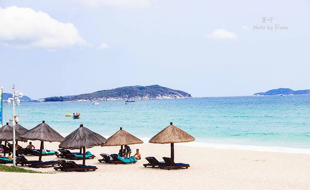 亚龙湾海滩几乎都被沿海岸的五星级酒店瓜分,每个酒店对自家门口的沙滩卫生环境进行管理,所以这里的沙滩都挺干净的。高级Tiffany蓝的海水,朵朵涌来的浪花,舒服的沙滩躺椅,超级享受的度假模式~在这里度假,每天都是超级棒的心情~