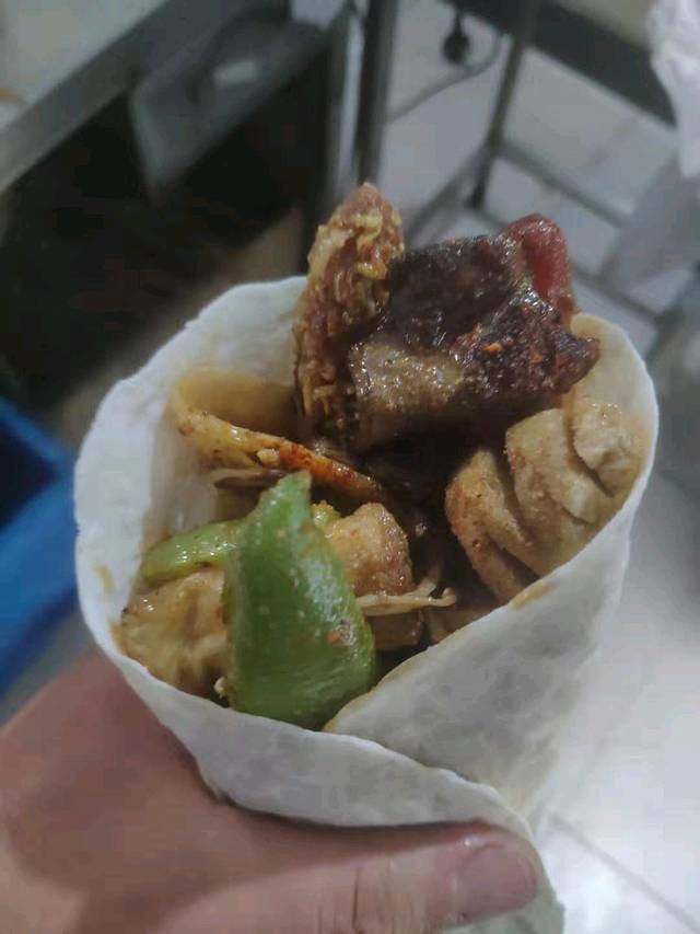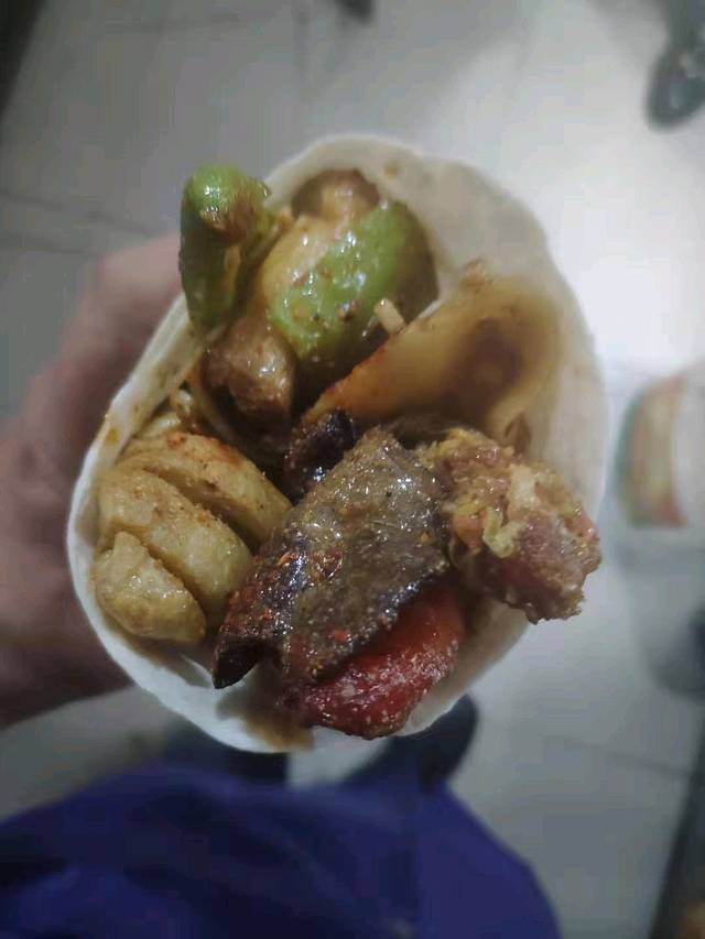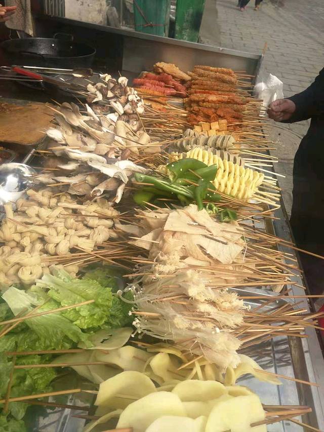 上午11点左右,就会有冒着热气的串串香从浓厚醇香的油锅里捞出来,在配上自制的酱料,摊在烙馍上,撒上孜然粉和辣椒粉,咬一口,好爽!,任你不由自主地吃相饿狠起来。