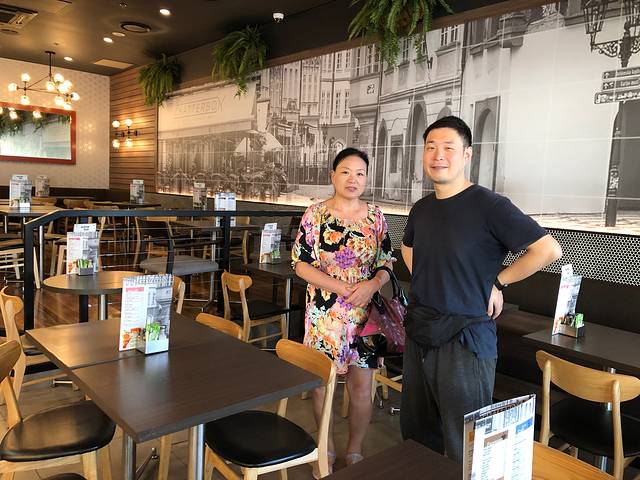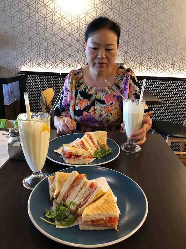 早上妈妈带我们品尝一下当地的咖啡和早餐文化