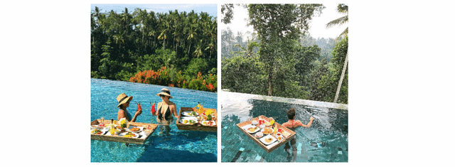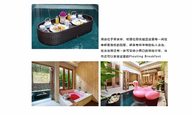 在巴厘岛的酒店,每一个早晨起来期待的事情不仅有巴厘岛的灿烂阳光,还有不同风味的特色早餐。今天就要和大家分享有漂浮早餐的巴厘岛酒店~