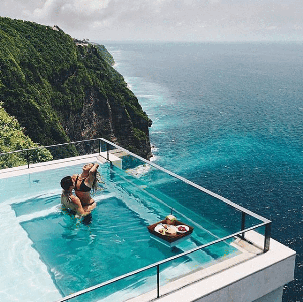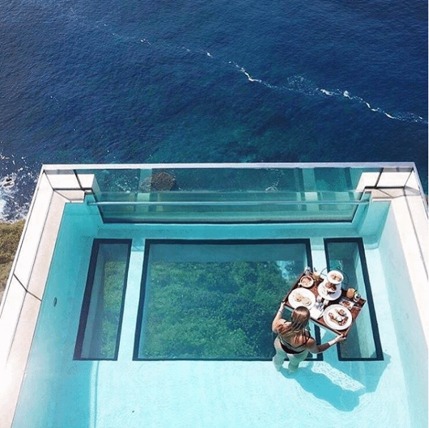 巴厘岛艾吉酒店位于乌鲁瓦图区域,在酒店内就可以欣赏壮观的海景。酒店客房配备一流的住宿设施与客房配置,具有良好的私密性且拥有着巴厘岛最美的透明玻璃底无边泳池,在水中站在玻璃上吃着漂浮早餐看着下面的高达百米的悬崖和海面,真是不一样的体验!