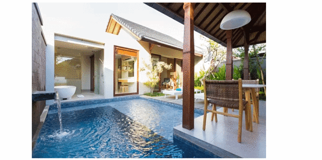 巴厘岛泽瓦阿精品别墅酒店位于水明漾,是家4星级酒店。客人可以在池畔的日光躺椅上放松身心,或享受别墅内的按摩服务,同时也再别墅内可以享受这里的漂浮早餐~