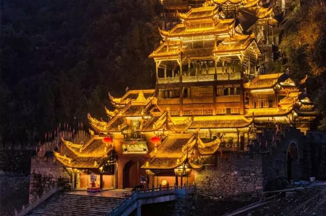 金灿灿的景区大门——九道门,恢弘气派,以完全不同于白天的样貌等待着美的发现者。