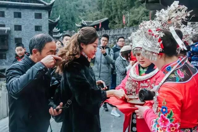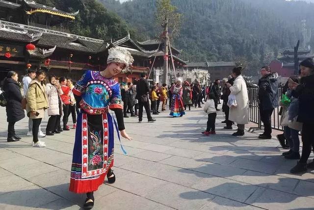 景区内,各种非物遗传表演以及部落重现,吸引了众多游客,随后在一片欢声笑语中,我们一行人,以及其他游客,在景区穿着苗服的工作人员的带领下,一起跳起了苗家《踩花山》,共同感受着新年的喜悦。