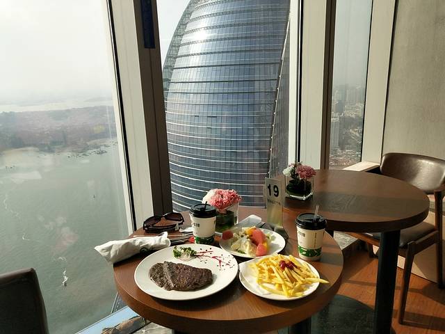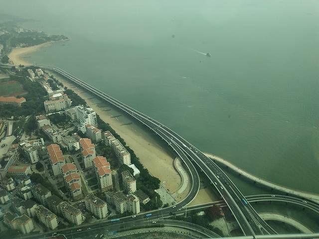 这天天气特别好,川衬衣都合适,睡个懒觉起来收拾好东西放在前台,带着女儿从中山街逛出去,终于吃到了网红店“阿信的厚吐司”,路过两次都因为人太多,还好上午逛的人少,吐司的确很厚,味道也很不错,值得推荐,15-30元一份,早餐可以在这解决,热的好吃点。吃完早餐带着女儿去曾厝垵公交站对面的沙滩玩,小朋友可以在这玩一天,不怕晒。提前在大众点评上订好了云上厦门(双子塔B塔55楼)的238单人餐券,双子塔成人门票160,1.1米小孩是80元,餐券含成人门票一张,决定带孩子在这混过最后一个下午。如果不打算在那待久的可以直接买票上去,饮料那些不贵,不消费也能坐那休息。回民宿拿了行李打车过去,-1楼入口处可以免费寄存行李,然后取票直接坐电梯到55楼,去得不是时候,遇到部分区域维修,很吵,本想安静待那喝咖啡,结果也只能拍下照吃完东西上58楼,58楼的爱情天台没多大意思,很小,主要就是多了一个“云中漫步”的项目,很刺激,在58楼悬空玻璃上行走,160元一人,如果不是带孩子很想去体验下坐在那,双脚垂下的感觉。总体感觉一般,票价偏高,牛排味道一般,其他饮品店东西都不贵,30以内,还可以接受。