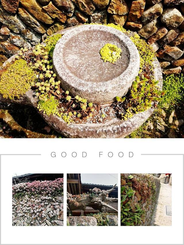 这个小村庄不仅仅是个石寨,也是个以养多肉为名的小村庄。家家户户的矮墙之上,多肉爬满围墙,零星点缀其中。围墙之上,有一些老根桩,根桩上密密麻麻的布满多肉。石上开花还能理解,木桩上开花倒是多少有点耐人寻味,后来发现,木桩被辟成两半,中间镂空放上泥土种上多肉,倒是一种新奇的养多肉方式。但是也确实富有特色。除了石头砌成的墙随处可见以外,随处可见的还有石磨,就像村中特有的景色一样,石磨也像一种必不可少的元素一般被人搁置在各个角落之中,石磨之上,种上细小的多肉,将石磨盘层层包围,仿佛磨盘上开出的朵朵小花。
