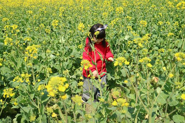 现在也是一片平原油菜花,相对灵山的油菜花来说,蜀源的油菜花开的早点,毕竟是山下的温度要好点开的早、到了近秋天的时候就是大片的向日葵花。