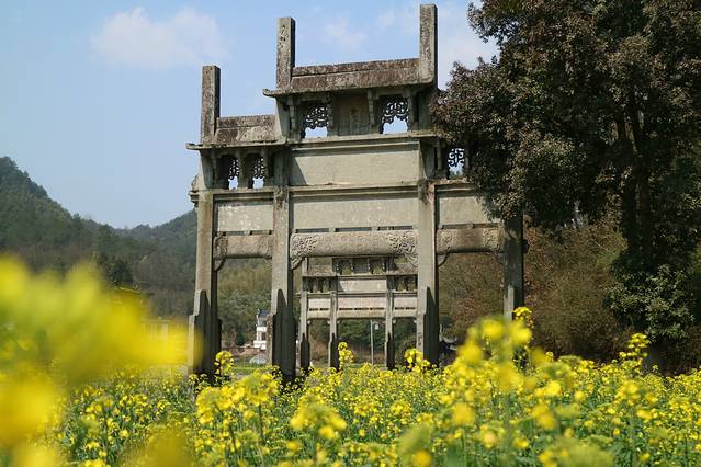 先是去看灵山的梯田油菜花再接着往前是蜀源,蜀源那边有两座牌坊,经过岁月的洗礼,仍是屹立不倒,向人们彰显着它的光辉历史