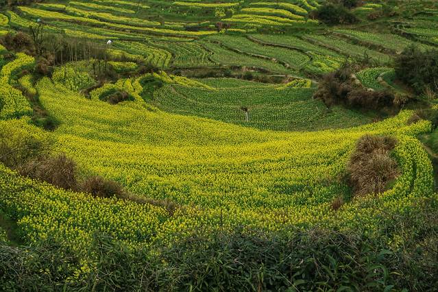 在这春暖花开的季节里渐渐迎来了油菜花的盛开,在呈坎镇的古村里隐藏着一个叫灵山的地方哪里有着诸多梯田,春天是油菜花,秋天是黄灿灿的稻谷