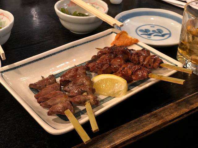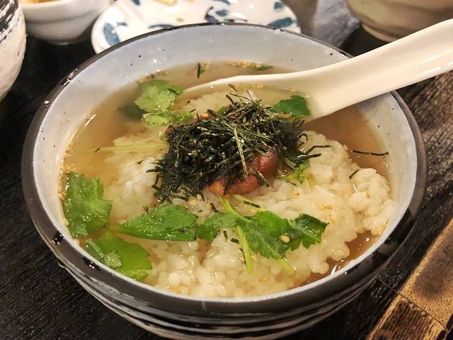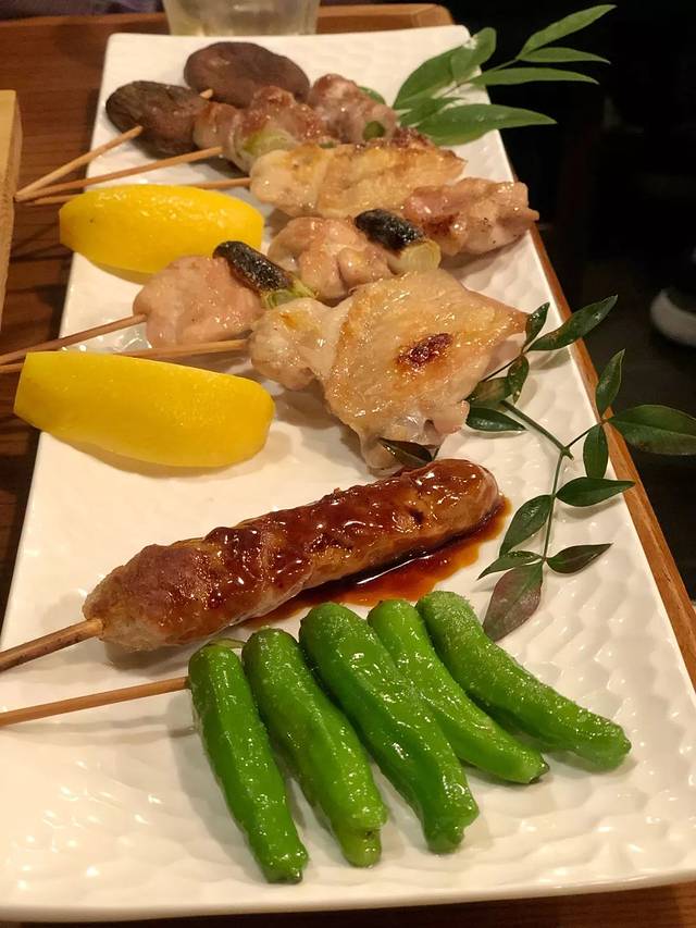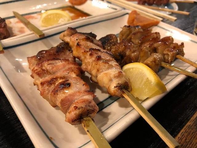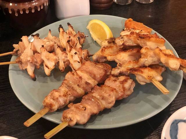 烤串主要以鸡肉为主,鸡腿、鸡翅、鸡心、鸡皮,外表略微有些焦,肉质鲜嫩,香气逼人。第二次来的时候,额外点了一份茶泡饭,一大勺饭混着汤汁一起送入嘴里,虽然是简单的茶汤和饭,但是那个香味可以回味很久。