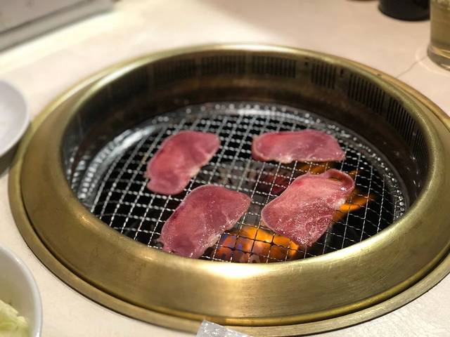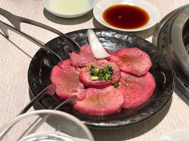 一开始我们小心翼翼地点了小份的黑毛和牛套餐,又额外加了一份牛舌,两人一起上手烤,最先烤的肉熟了,刚沾好酱一口吃下去,又得赶紧把另外几片肉给翻面了。