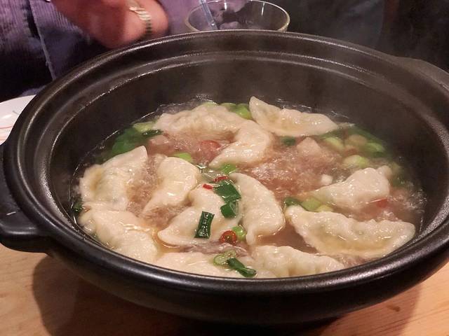 既然是一家 九州 料理店,当然是要点一份招牌的博多铁锅饺子,端上来的时候汤汁还咕噜咕噜的开着,葱花的香味已经和热气冒到了鼻头,微冷的天气里吃上一锅热饺子真的再好不过了,何况每一颗饺子的肉馅儿都很足。