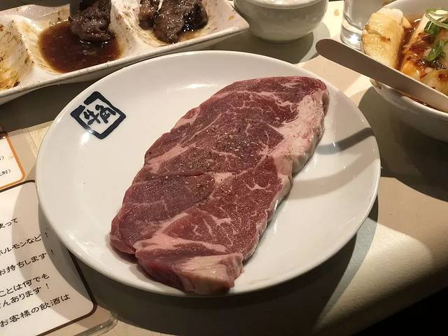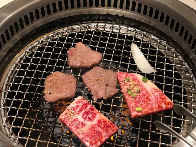 服务员会在桌上放也一个点菜用的ipad,所有的菜品都可以直接在这里下单。牛五花、牛舌、牛小排、羊排等等都点了个遍,烤盘上滋滋地烤肉还真是会赶走疲惫的,第一口下去的那种让人惊呼的感觉实在是难忘。
