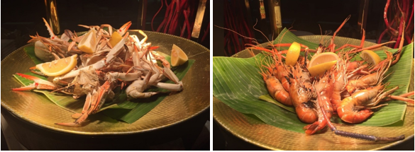 这家自助餐主打的是螃蟹自助餐,蒸的炒的样样都有,而且螃蟹很新鲜,出了普通的螃蟹之外还有超大只的阿拉斯加蟹钳,两只手指那么粗的蟹钳真的是超值的!除了蟹之外还有新鲜的河虾以及品种多样的日式寿司,如果想吃“宋丹”(泰式青木瓜沙拉)的话还有生蟹“宋丹”可以吃哦!