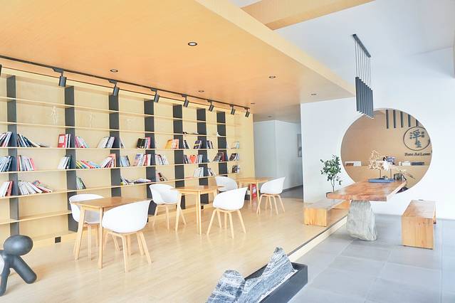 民宿有着贴心的服务,白天有早餐提供,中式早点又或是西式糕点。白天的图书馆分外安静,就像一个文静少女。不忍打破这静态的美丽。