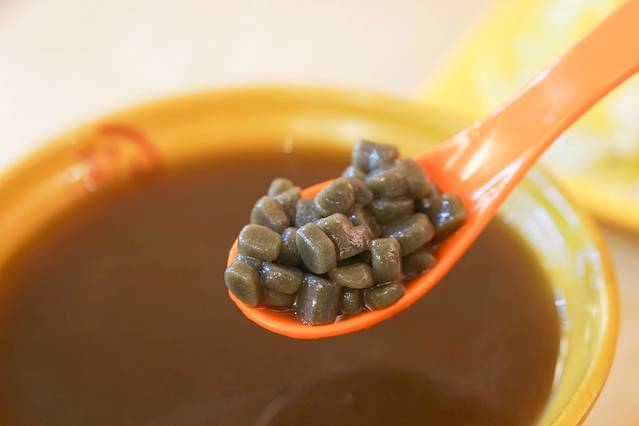 这道热甜品叫做崖香鸡屎藤,鸡屎藤这个名字听起来是不是很滑稽呢?给大家科普一下吧,鸡屎藤是种中草药,可以祛风、活血、止痛。甜品中的“鸡屎藤”是把它原植物叶和米粉合拌而成的一种“糯米圆子”从汤底下勺起来的鸡屎藤,扬起来的热烟带着淡淡清香的味道。糯糯地,很有嚼劲。多吃点“鸡屎藤”这可是有清凉下火的功效呢!