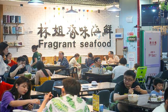 说到餐馆,全部聚集在海鲜摊位的四周。这里的餐馆和海鲜摊位几乎都是有合作的。整个买海鲜到吃海鲜的过程特别省心,把海鲜挑选好,在选择的餐馆门前称重付款就可以坐下来静等大餐啦!