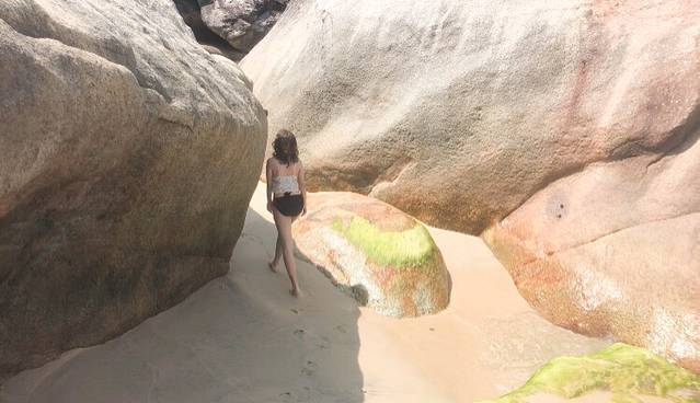 “哇,是这里吗?景色好美呀”我忍不住喊出了声音。不远处的那片蓝色大海驱使我们踏入了这片区域,这里像是没人发现的圣地,仿佛自己来到了一座静岛。