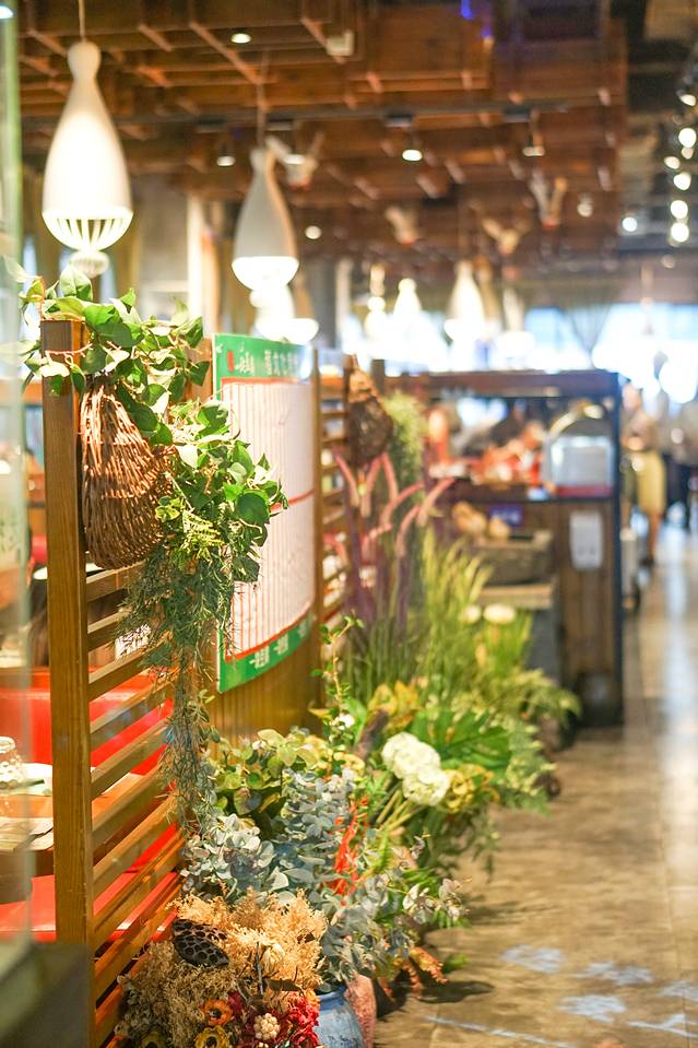 餐厅空间范围上主要分为3个区域。大堂、包间、阳台、美食区域、表演区域