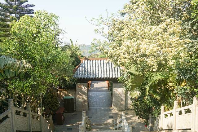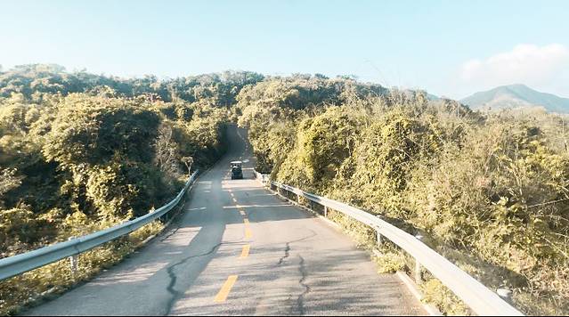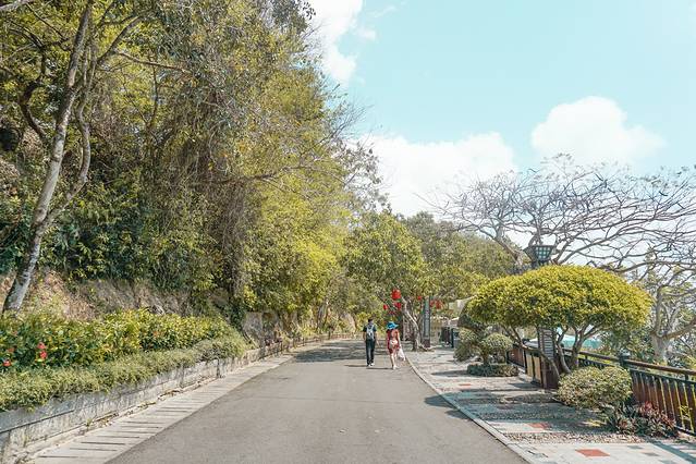 一路上,绿树成荫,植被茂盛,在车子缓缓向上的同时,我能够隐约地从树叶缝中看到蓝色的海洋。
