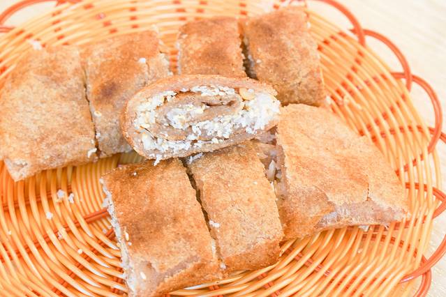 高粱卷是以高粱、糯米、叶肉为主的油煎面团小吃。吃上一口,是一种独特的风味,外脆内嫩的口感,浑厚浓郁的粗粮味道,这个时候搭配一口清茶,更加适合不过吧。