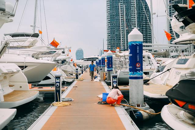 码头并不是所有人都可以进去的,需要工作人员刷卡进入,所以这里还是挺安全的。码头的木栈道打扫的很干净,每一艘游艇上也有非常多的工作人员,有他们一起出海,完全可以放心,安全绝对没有问题的。