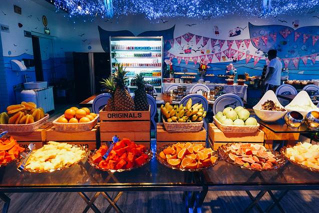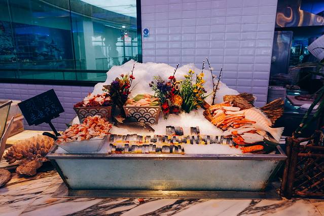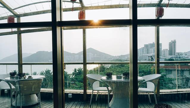 窗边位置需要提前预定,可以俯瞰整个大东海,享受视觉和味觉的双重盛宴。独立式明档,开放式厨房,餐厅荟萃中西精品海鲜自助美食,晚间更有歌手现场助兴。